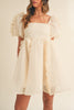 Elevate your style with our Organza Ruffle Mini Babydoll Dress. Featuring a square neckline, ruffle details, and short puff sleeves, this dress is both elegant and unique. The self tie, back smocking, and exposed zipper add extra flair. Perfect for formal occasions, such as engagements and weddings.