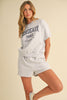Stay effortlessly cool and comfy in the Bordeaux Graphic Cotton Sweat Set! This matching set features a relaxed-fit top with bold "Bordeaux France" lettering and cozy shorts with an elastic waistband. Made from 100% cotton, this set offers breathability and all-day comfort. Available in vibrant blue and versatile light grey, it’s perfect for lounging or casual outings.
