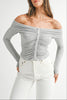 Ruched Ribbed Jersey Off Shoulder Top